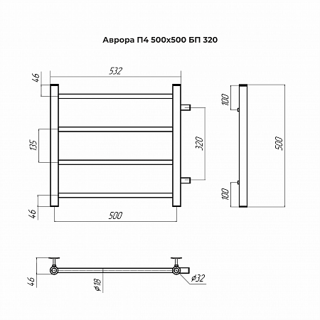 Аврора П4 500х500 бп320 Полотенцесушитель TERMINUS